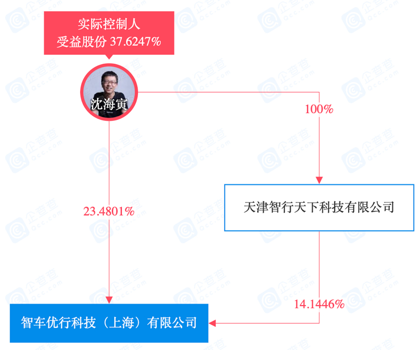 据悉,智车优行科技(上海)有限公司成立于2014年,法定代表人为沈海寅,注册资本约8837万人民币,经营范围包括汽车科技、电子科技、计算机科技、软件科技、网络科技领域内的技术开发等。企查查股权穿透显示,沈海寅为该公司最大股东,持股比例为23.48%。