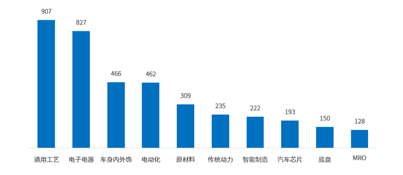 根据生态车旅图供应链平台数据统计,江苏省汽车产业链相关企业共计28,158家,其中常州地区汽车产业链关联企业4,349家,在常州地区汽车产业链相关企业中占比最高的是通用工艺类企业,共907家,占比20.9%;其次是电子电器类企业共827家,占比19.0%;车身内外饰类企业共466家,占比10.7%;电动化、原材料和传统动力类企业数量分别位列四五六位。