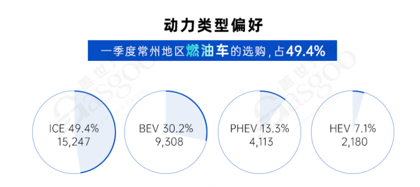 新能源渗透率43.5%。2024年1-3月常州地区新能源销量1.3万辆,渗透率高达43.5%,其中纯电销量0.9万辆,整体市场占比30.2%,插混销量0.4万辆,在整体市场占比13.3%。燃油车销量1.5万辆,销量占比49.4%,燃油车仍然是消费者最偏好的动力类型车型。