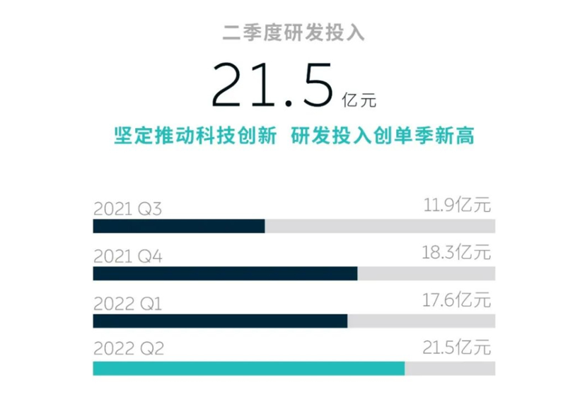 研发投入上,二季度总费用达21.495 亿元,同比增长143.2%,环比增长22.0%。蔚来指出,这主要是由于研发职能的人员成本增加,以及新产品和技术的设计及开发成本增加所致,目的在于强化长期的竞争力,因此未来这部分的投入仍然会持续。