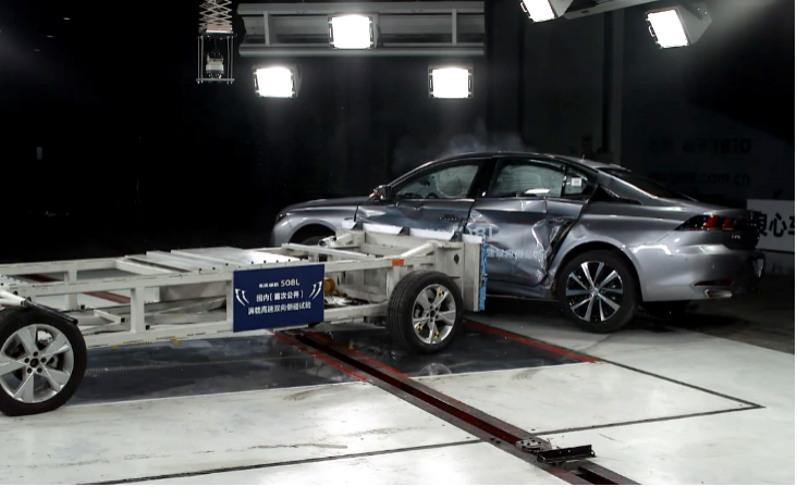 中汽研专家介绍,本次东风标致508L侧面碰撞试验难度是“国内创纪录“的”首次”级别。原因在于三个难点:“高速”、“满载”和“双向”。