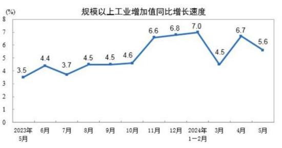 中国经济网北京6月17日讯(记者 张懿)国家统计局17日发布数据显示,5月,全国规模以上工业增加值同比增长5.6%,环比增长0.3%;1-5月份,全国规模以上工业增加值同比增长6.2%。